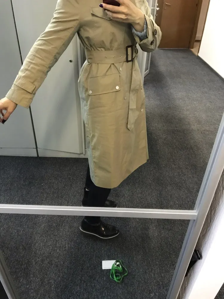Плащ красивый, но есть много минусов. Ткань тонкая, хлопок, мнется, на рукавах даже после примерки заломы. Плащ только на лето, носить с лёгким платьем, на осень не подойдёт. Не понравилось сочетание металлических кнопок застежки и пуговиц и пряжки на ремне, не подходят по стилю друг к другу совершенно. Самое интересное, что плащ застегивается на мужскую сторону, очень неудобно. Писали в отзывах, что плащ на вешалке, моя вешалка видимо куда то делась, тк пакет из DPD был частично вскрыт, либо её не положили. Обидно.