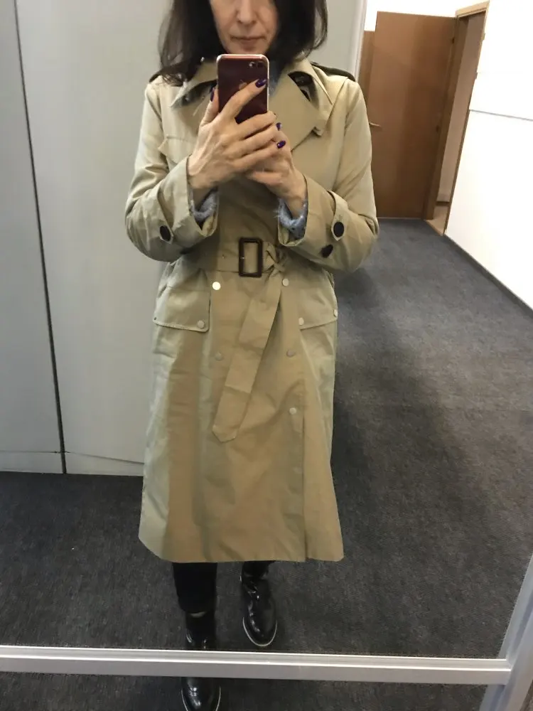 Плащ отличного качества, без запаха, швы ровные. Мои параметры 93/73/102, размер подошёл отлично. Не оверсайз, но свитер надеть можно. Ткань хамелеон, переливается в зеленоватый. Рукава мне впритык, мой рост 168. Носить буду с удовольствием.