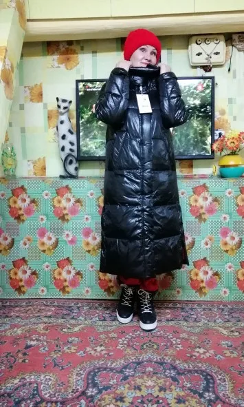 Куртка очень понравилась. Описанию соответствует полностью. Ношу 44-46 на свои параметры гр.92, т.77, б.96см. взяла 46 L. Осталась довольна, сидит чуть свободновато, можно поддеть по толще свитер. По росту как и хотела до середины голени. Продавец общительный, но посылку отправил не сразу, после отправки примерно неделя полторы до Смоленска (а с момента заказа три недели).
