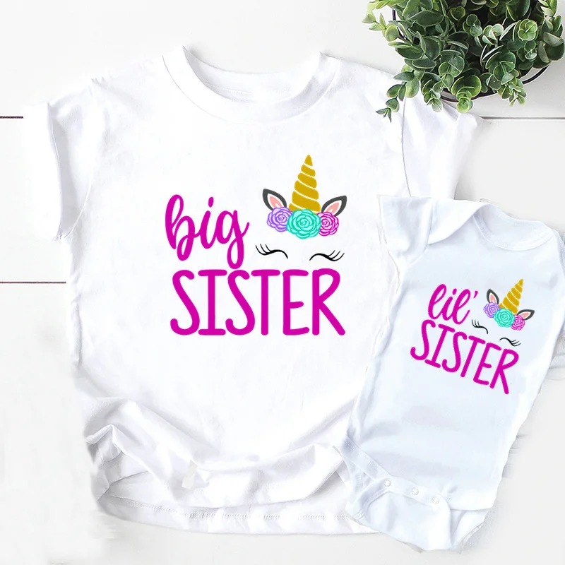 Футболка и комбинезон для девочек, мультяшный рисунок единорога, короны, маленьких сестер, цветов, комплект одежды для детей