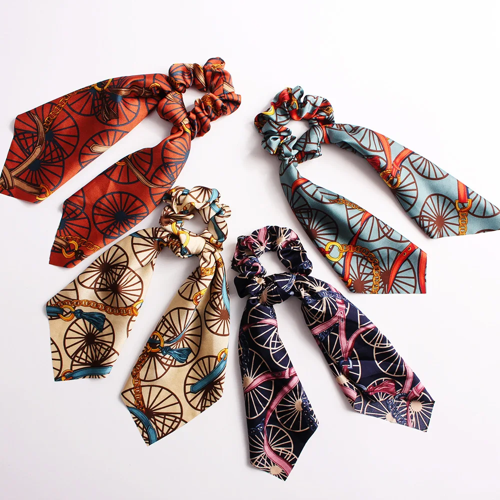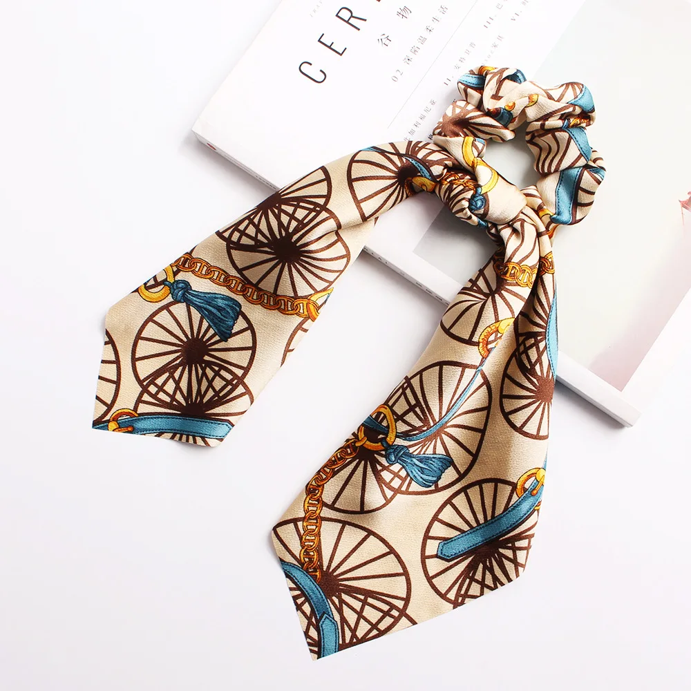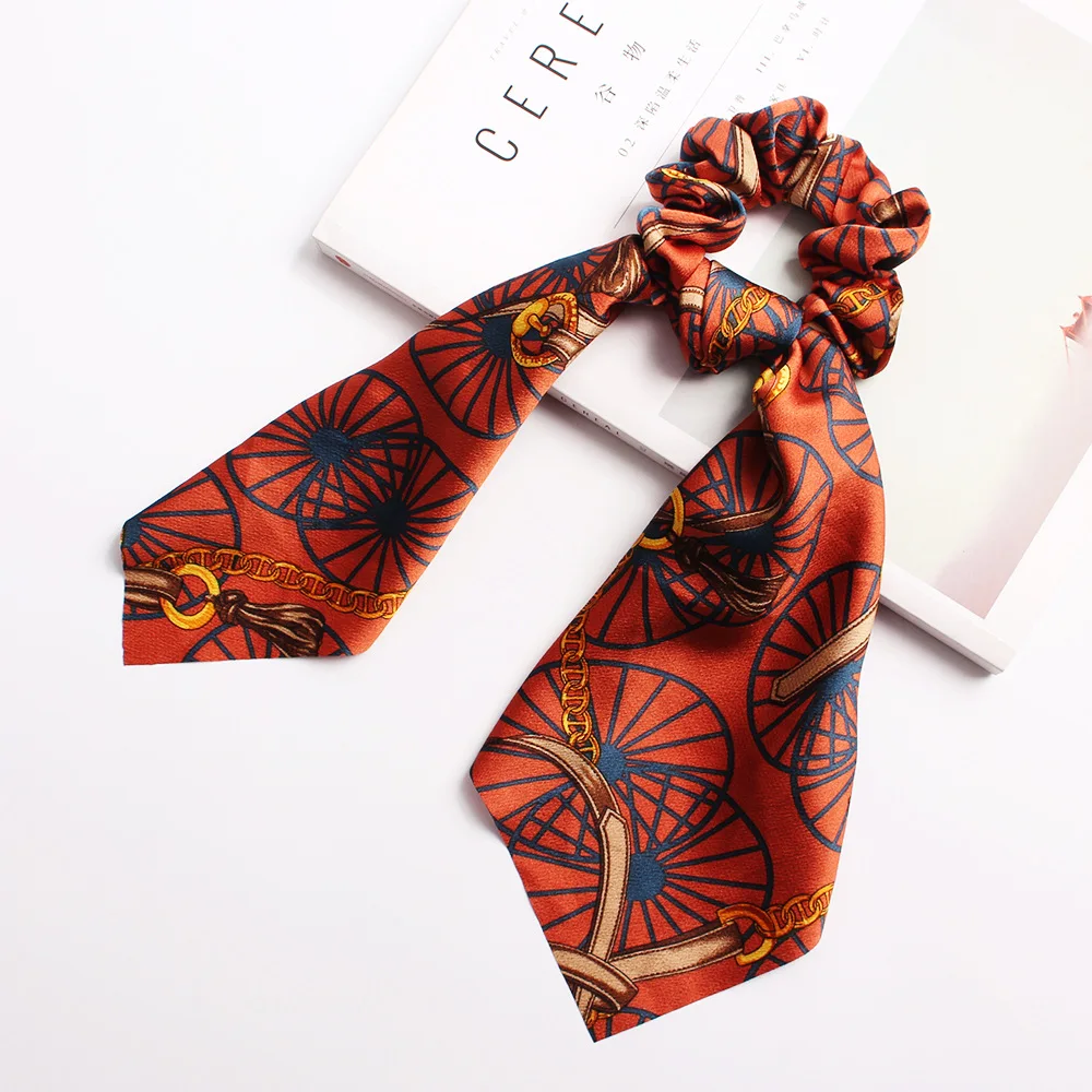 Атласные шелковые резинки для волос с цветочным принтом, длинные стринги, резинки для волос, Женская лента для волос, держатель для конского хвоста, шарф, резинка для волос, аксессуары