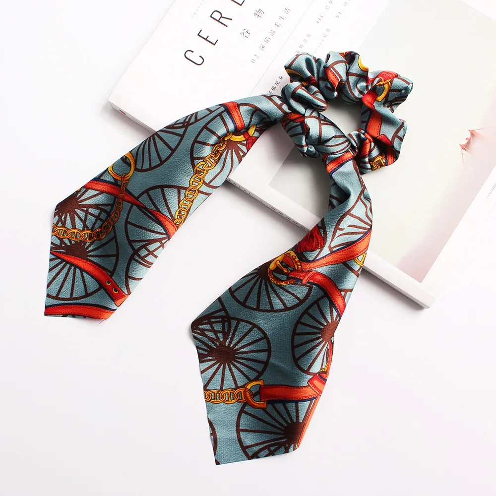 Резинка с цветочным принтом Шелковая эластичная резинка для волос для женщин Женский шарф для волос Резиновые веревки с бантиками Галстуки для волос для девочек Аксессуары для волос