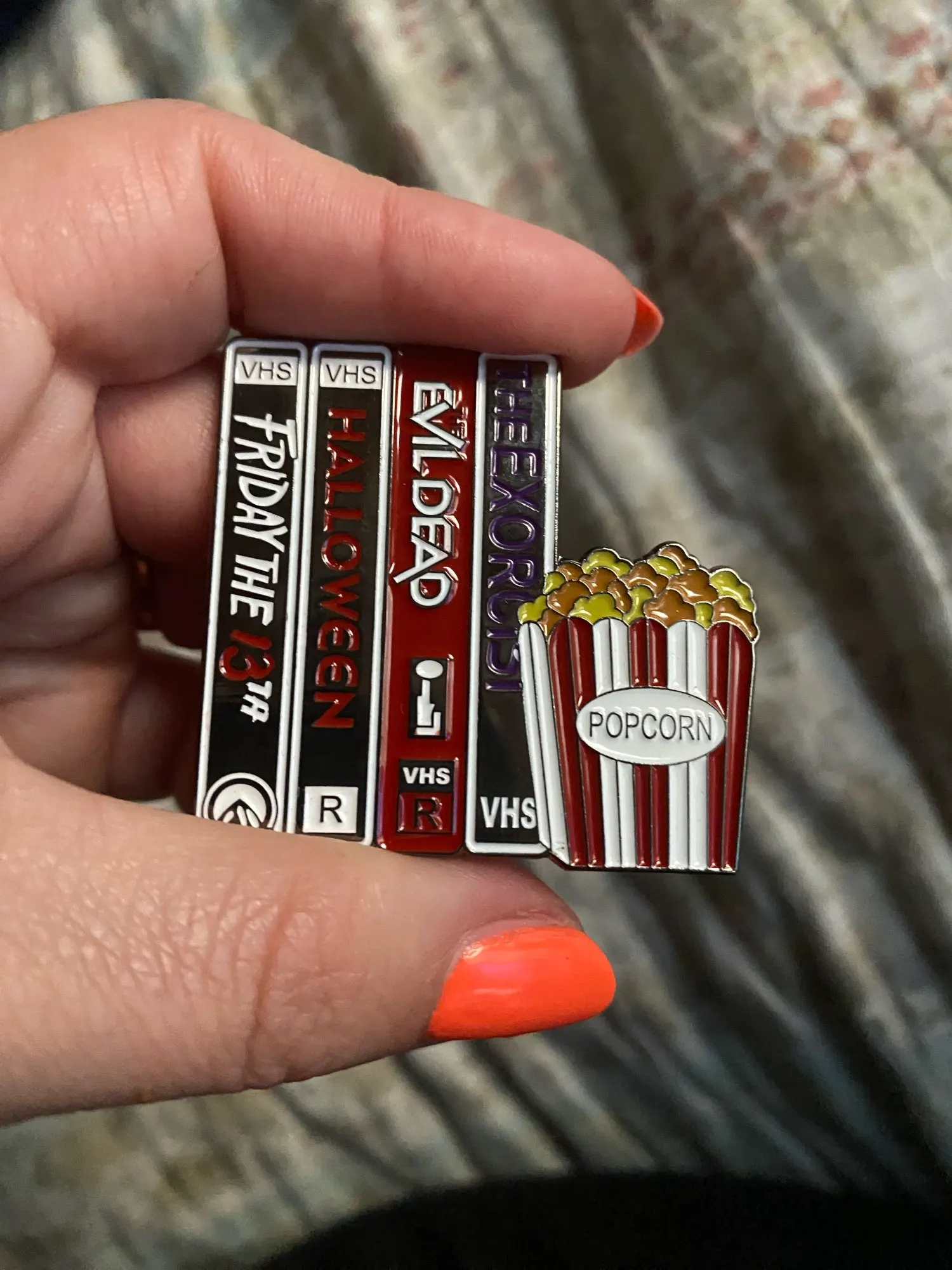 Эмалированная булавка VHS И chill popcorn, Классическая Брошь в стиле фильма ужасов, подарки на Хэллоуин