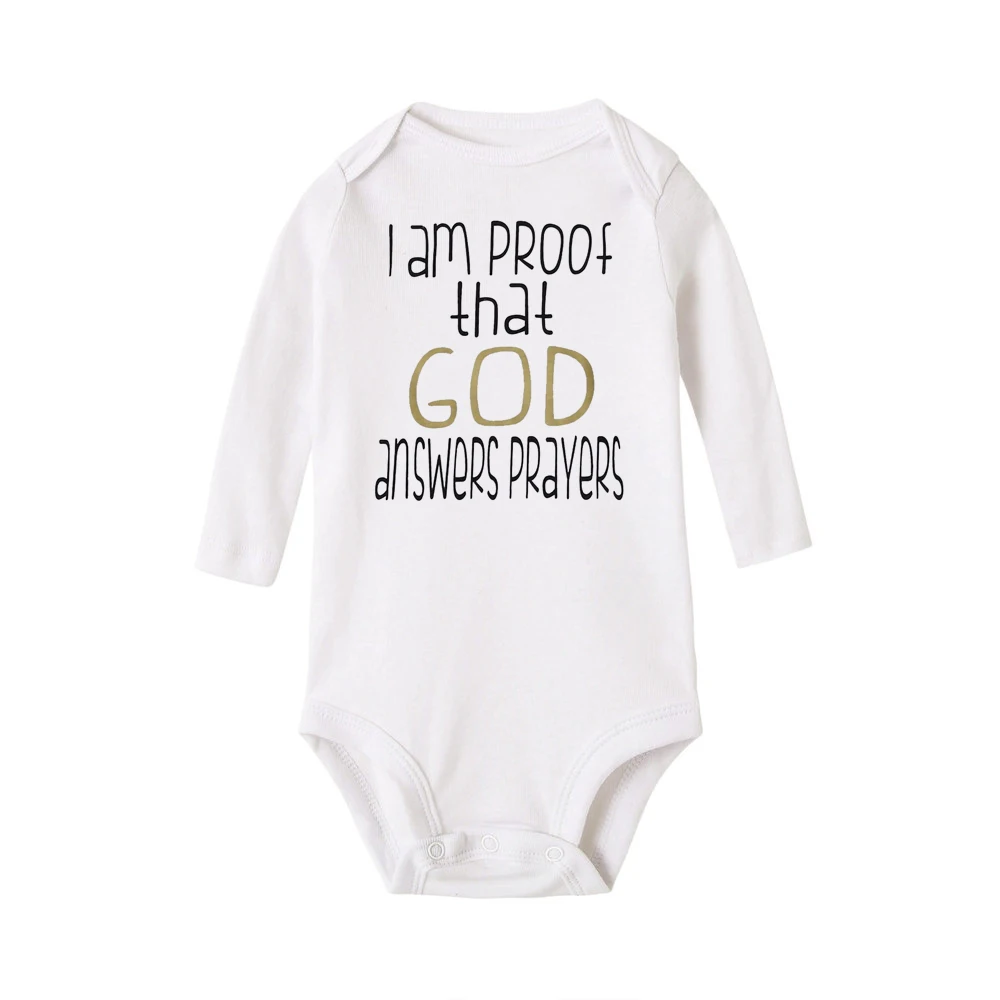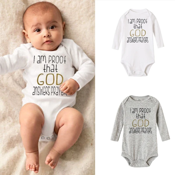 Я свидетельствует о том, что Бог отвечает на молитвы новорожденные дети младенческой для маленьких мальчиков летняя футболка с короткими рукавами для девочек, боди-комбинезон, комплект одежды
