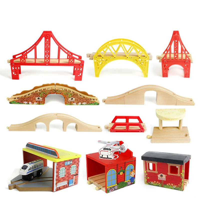 Деревянный трек для поезда, аксессуары, набор железнодорожных рельсов из бука, мостовой туннель, поворотный круг, сделай сам, железная дорога, игрушка для детей
