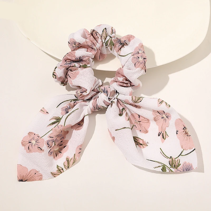 Весенняя новинка, кроличьи ушки, цветочный узор, с узлом, для женщин, с буквенным принтом, на голову, веревка, кольцо для волос, для маленьких девочек, веревка для волос, ювелирное изделие