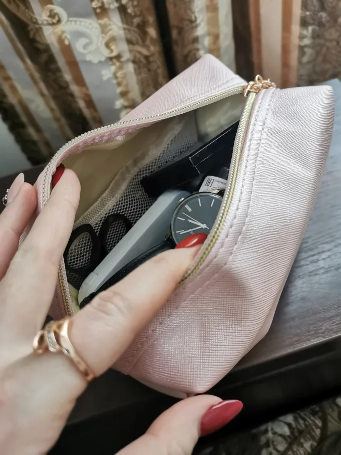 Классная косметичка. При распаковке был небольшой запах, но потом он пропал. Я очень довольна покупкой.
