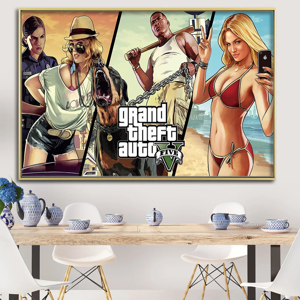 Популярная игра Gta 5 Картина на холсте плакаты и принты картины на стену картины для спальни игровой комнаты декоративная картина