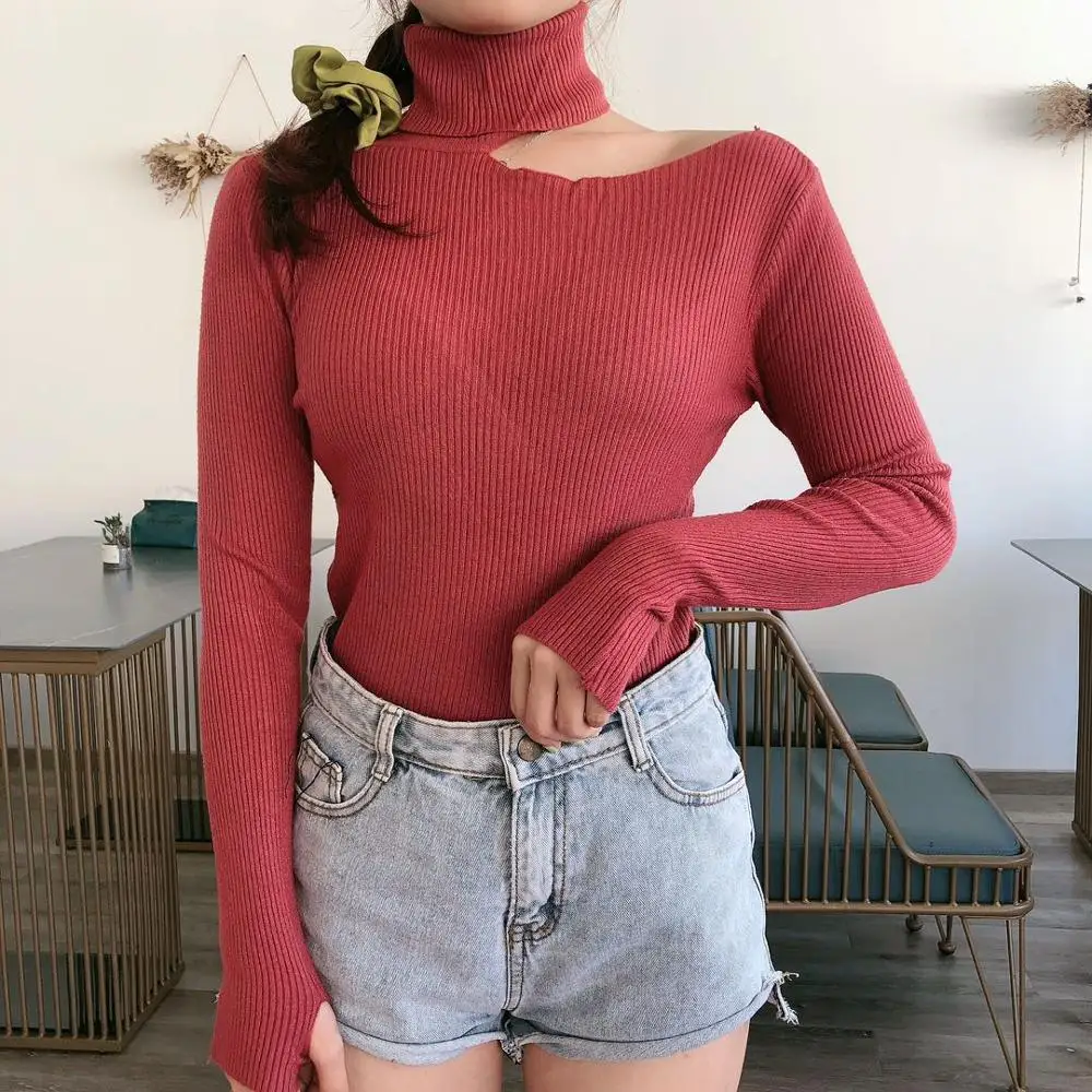 Женский свитер с высоким воротником, сексуальные пуловеры с открытыми плечами, сезон осень-зима 2020, вязаные Базовые Женские свитера, облегающие Топы абрикосового и синего цветов