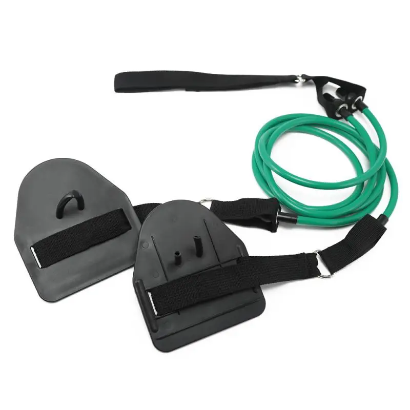 Резистивные ленты с скользящими ручками позволяют наносить удар по плаванию и тренировать его во время работы и фитнеса даже без бассейна