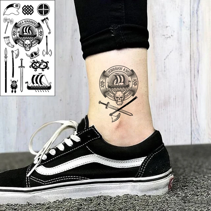Водостойкая Временная тату-наклейка, морской воин, тотем, инструмент, Ax Boat Battlehorn Sword флэш-тату, искусственная тату для мужчин, женщин и мужчин