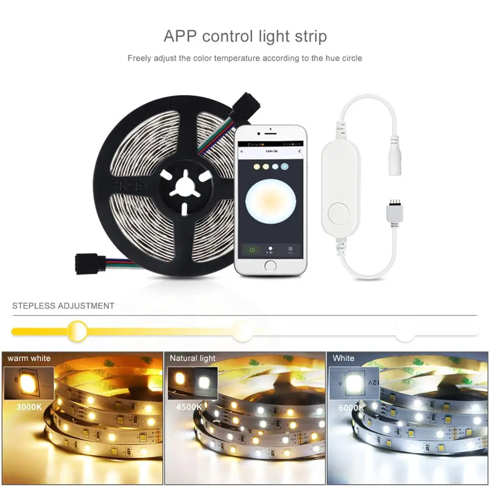 CCT WIFI светодиодный ленточный светильник Tuya Smart Dimmable светодиодный светильник s 5 м DC12V совместим с Amazon Alexa ,Echo ,Google Home 2800k-6500k