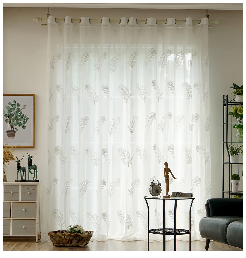 Современные прозрачные Занавески с вышивкой в виде листьев для гост...