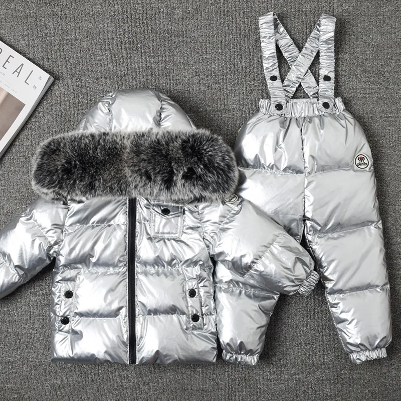 Детский зимний комбинезон, на белом утином пуху, с воротником из лисьего меха