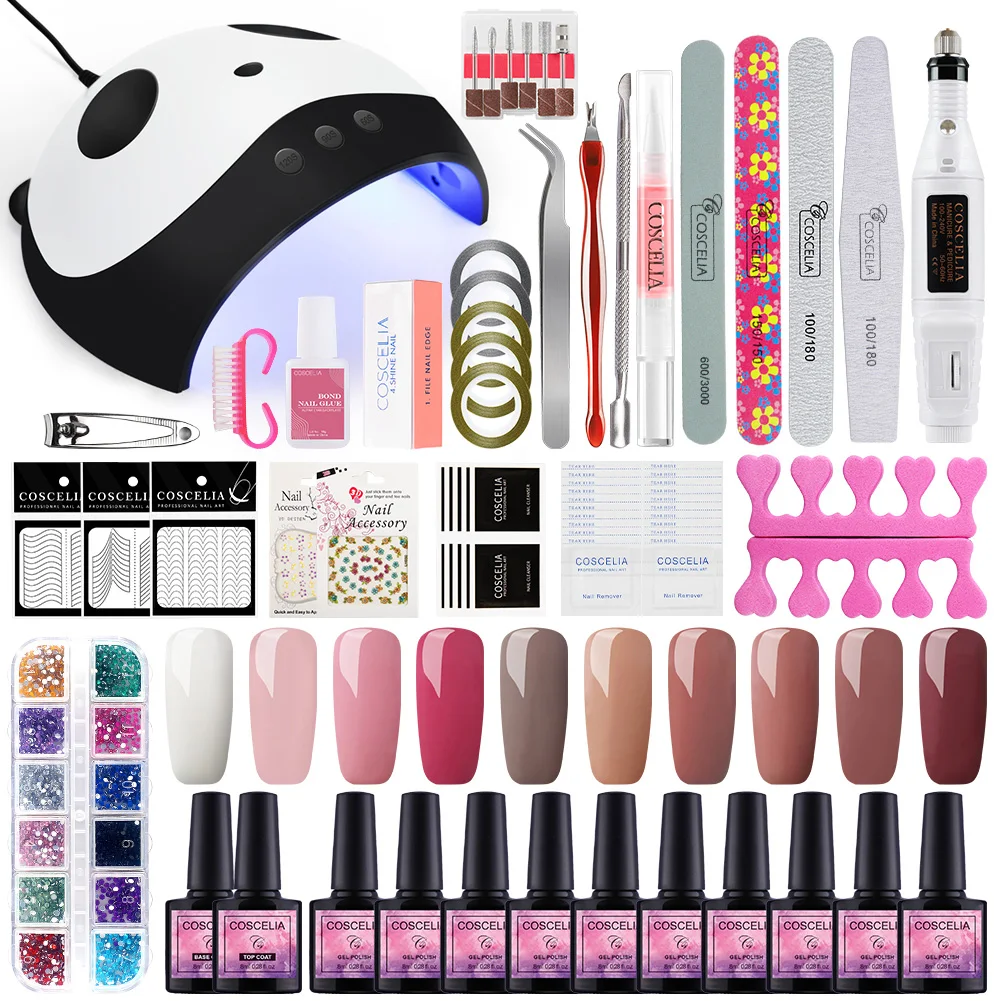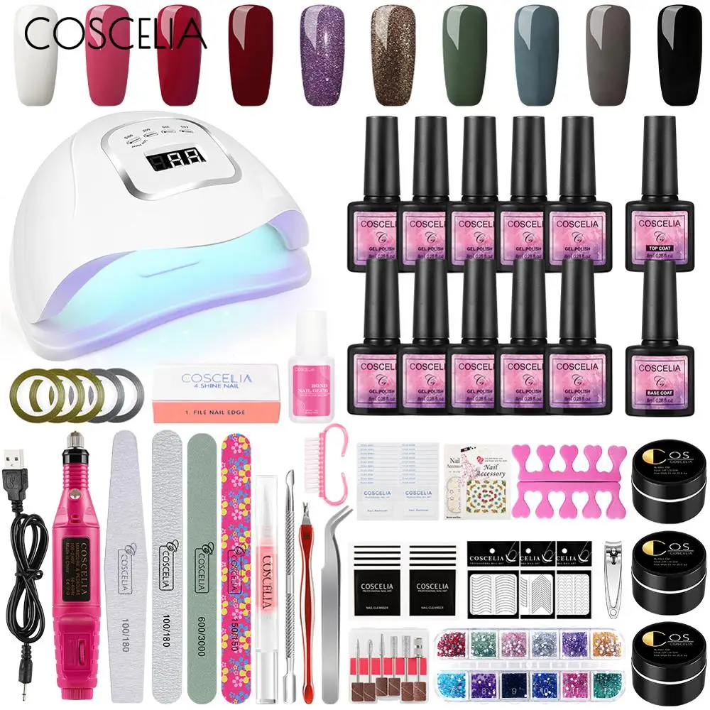 Лампа COSCELIA набор гель-лаков для ногтей УФ светодиодный LED для маникюра, Фрезерный резак для базового и топового покрытия, гибридные инструменты для нейл-арта