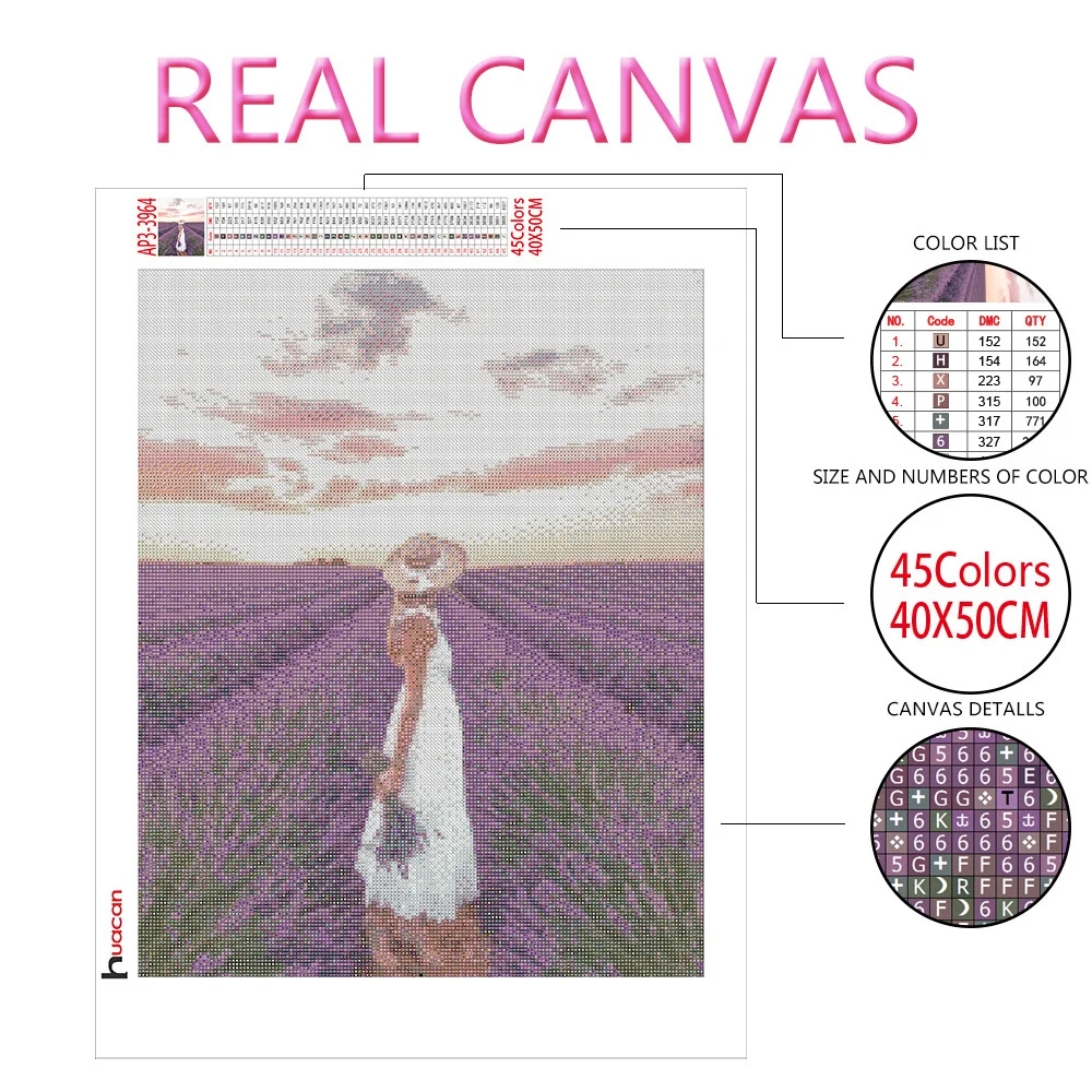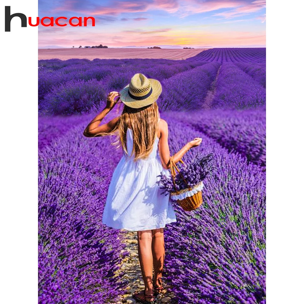 Huacan алмазная вышивка девушка мозаика лаванда картины из страз алмазные картины цветы домашнего декора