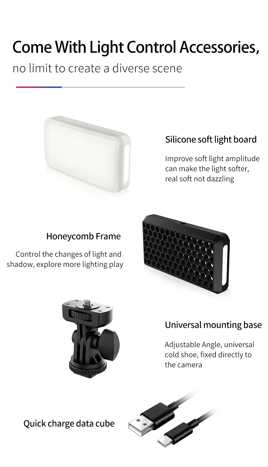 Светодиодная лампа VIJIM VL196 2500K-9000K RGB для видеосъемки, с р...