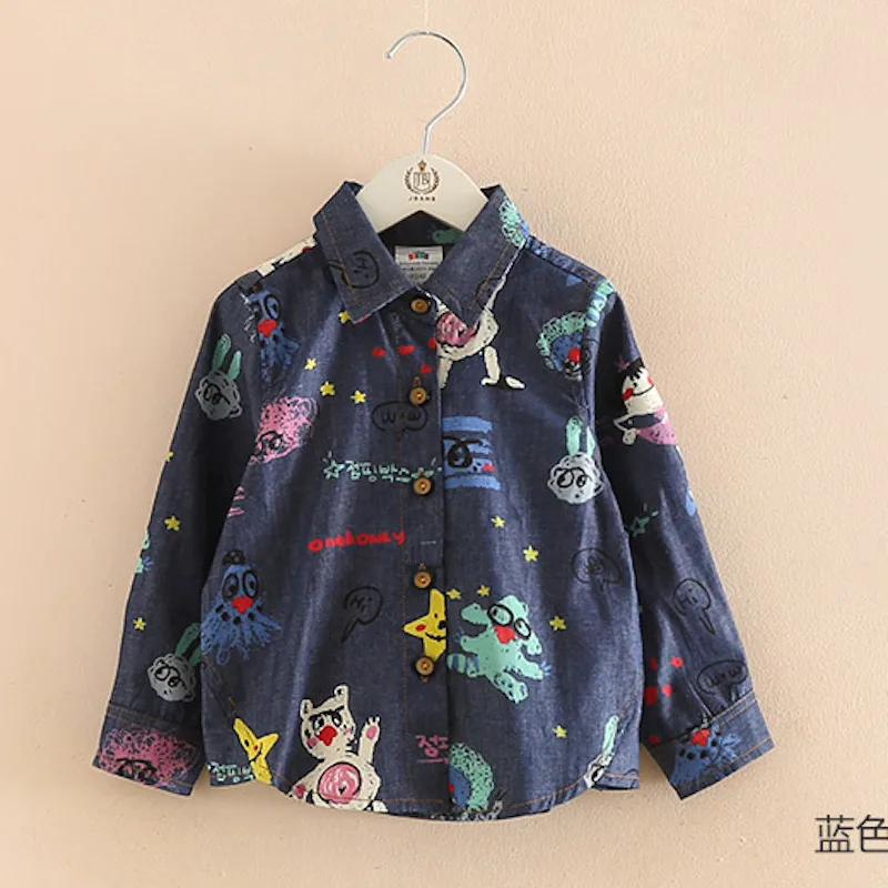 Новинка весна-осень 2020, детская одежда, Джинсовая блузка с длинным рукавом и животным принтом для маленьких девочек