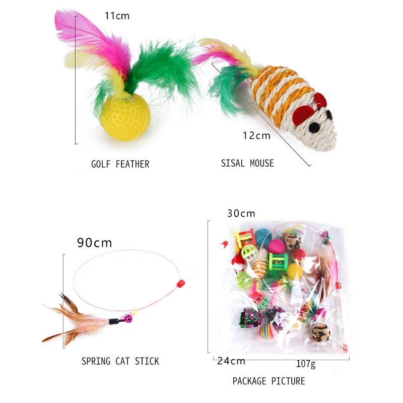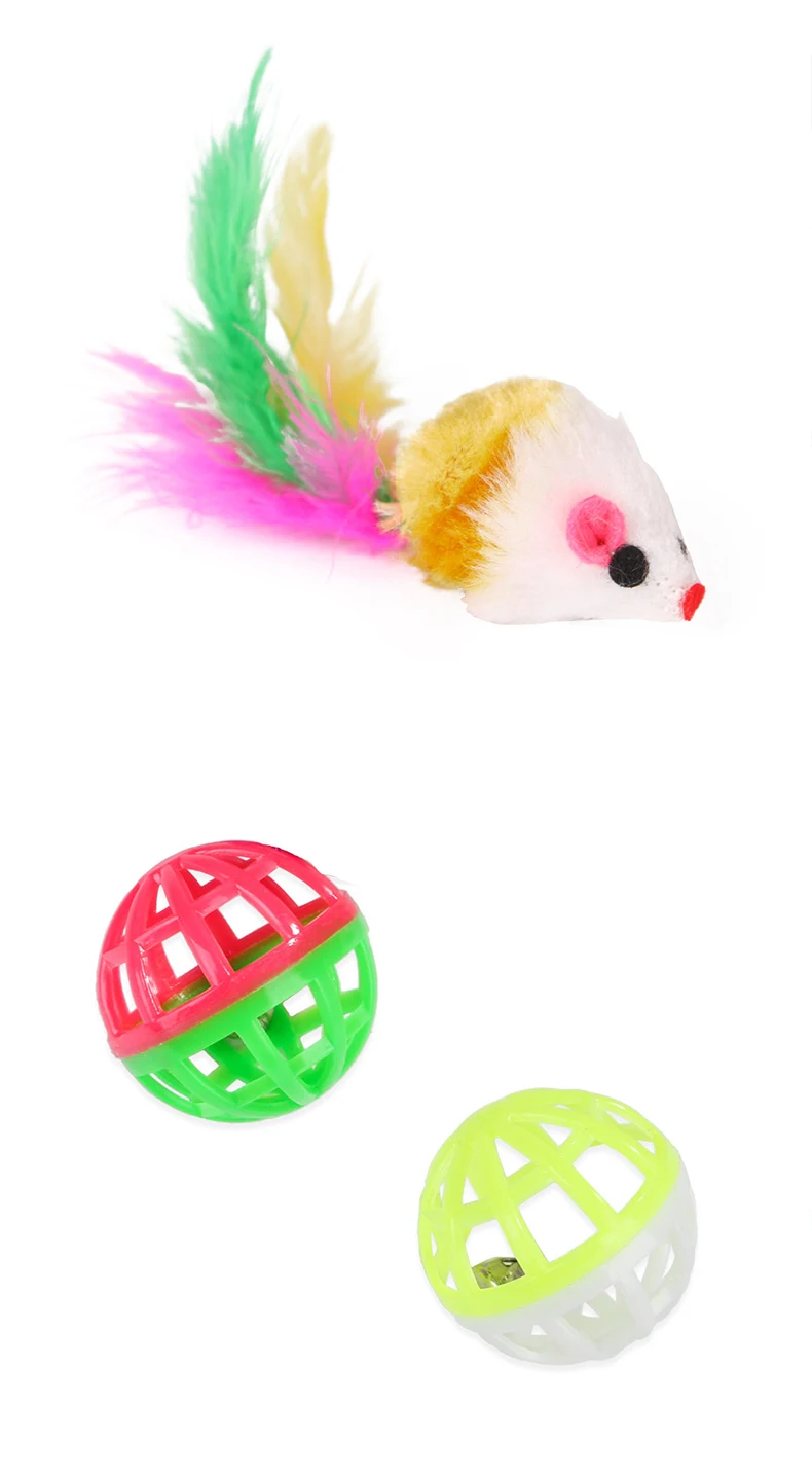 20 комплектов, кошачья интерактивная игрушка, радужная игрушка для кошки в виде шара, красочная перьевая палочка, плюшевая мышь, палочки для кошек, игрушки для кошек, аксессуары для кошек