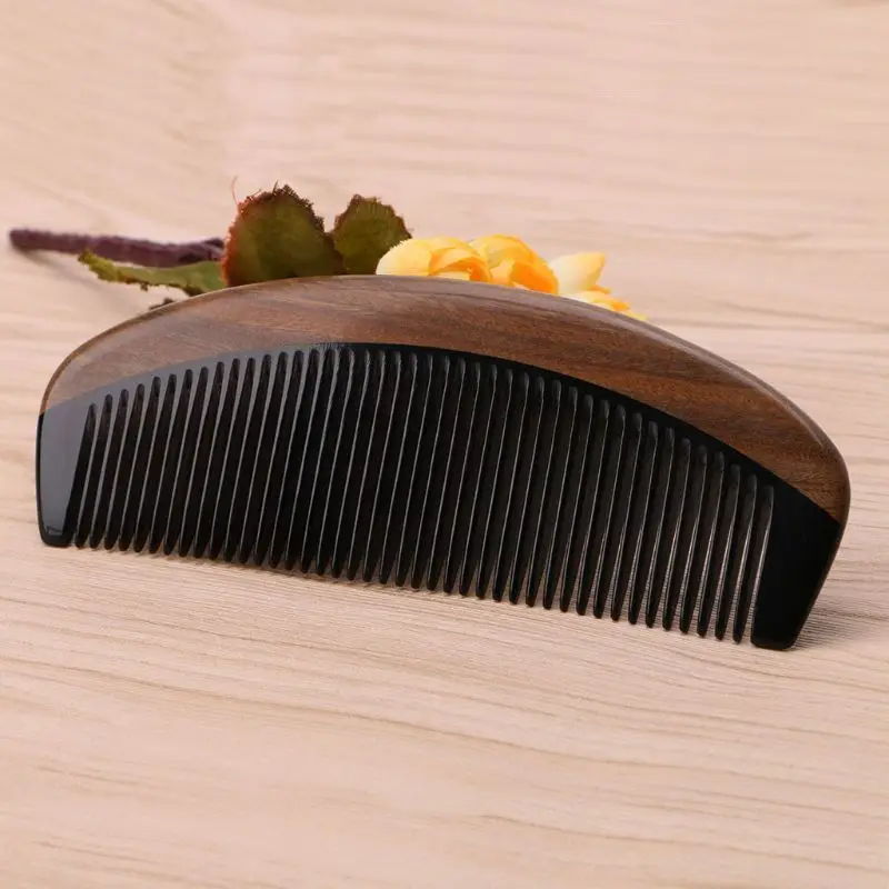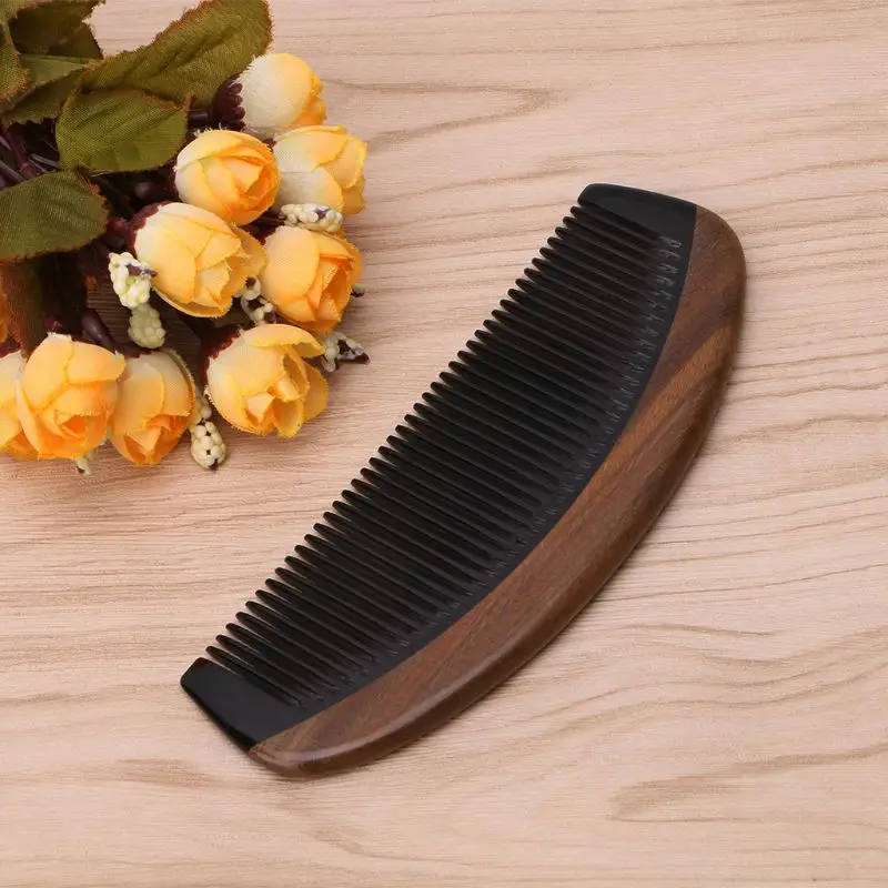 Деревянная расческа для бороды, инструмент для макияжа, массажный Уход за волосами натуральное зеленое сандаловое дерево Ox Horn