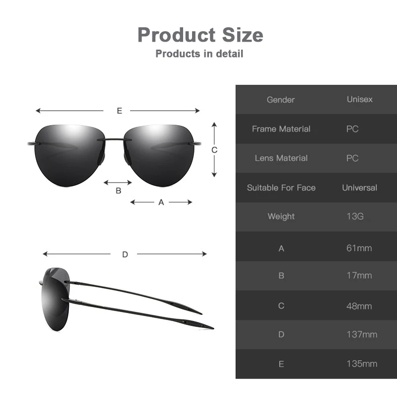 Солнцезащитные очки без оправы для мужчин и женщин, спортивные ультралегкие темные очки для вождения, рыбалки, Tr90, D131