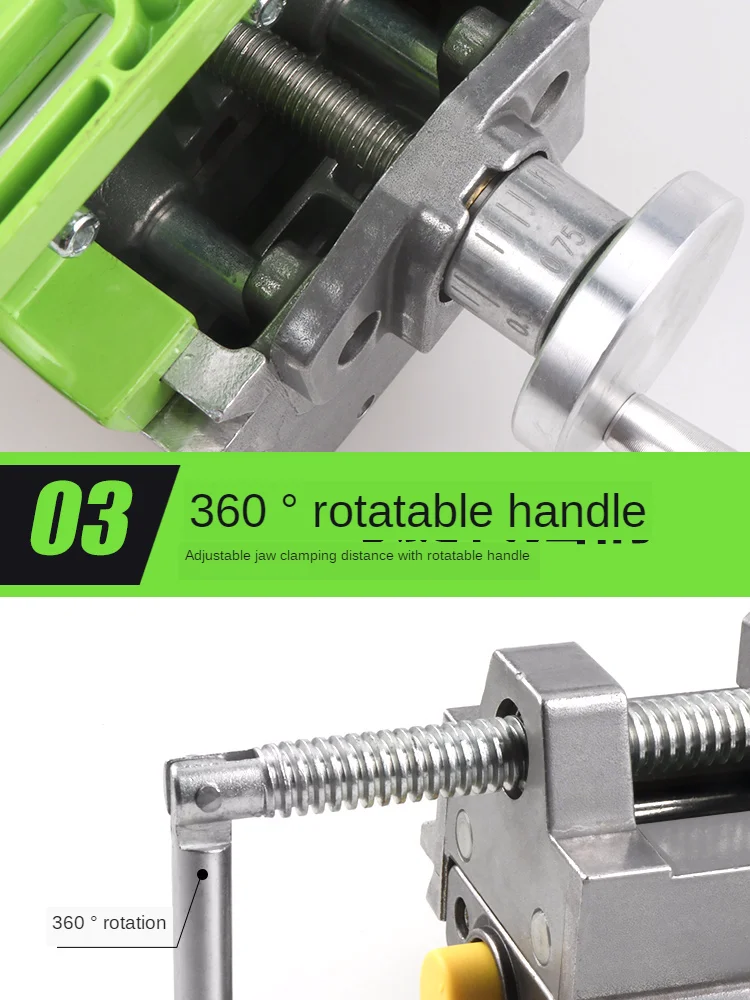 2 поворотные рукоятки из алюминия для регулировки тисков спереди на спине и слева направо.