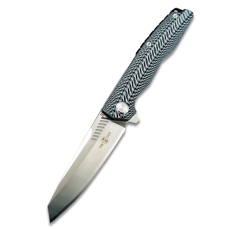 Складные ножи TwoSun TS16G10 D2, карманный Клинок с лезвием, Черная рукоятка из G10, клипса, шарикоподшипник, для охоты, кемпинга