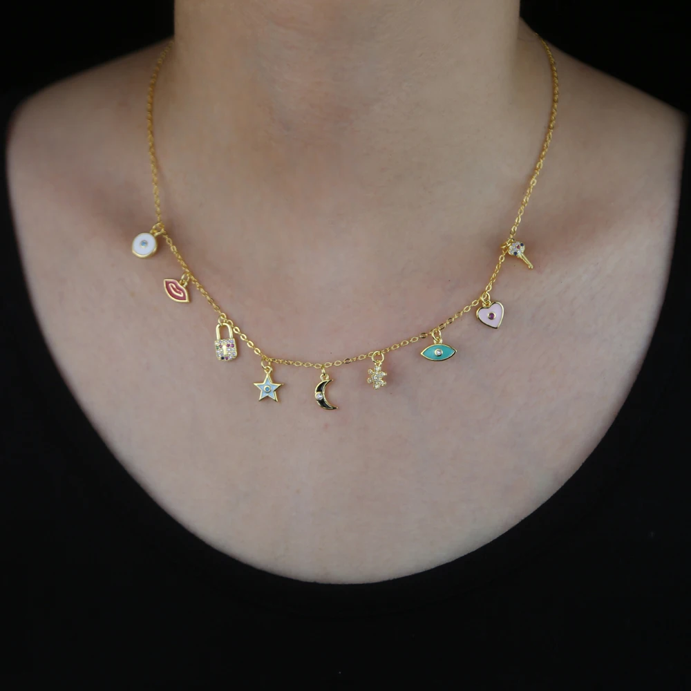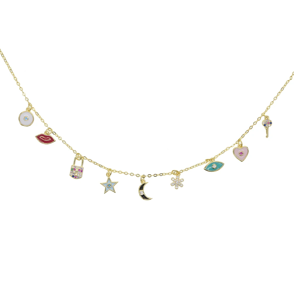 2022 летние стили минималистичный Цветок Луна Звезда поцелуй сердце капля эмаль Cz выложены Очаровательное ожерелье-чокер для женщин девушек ювелирные изделия для вечеринки