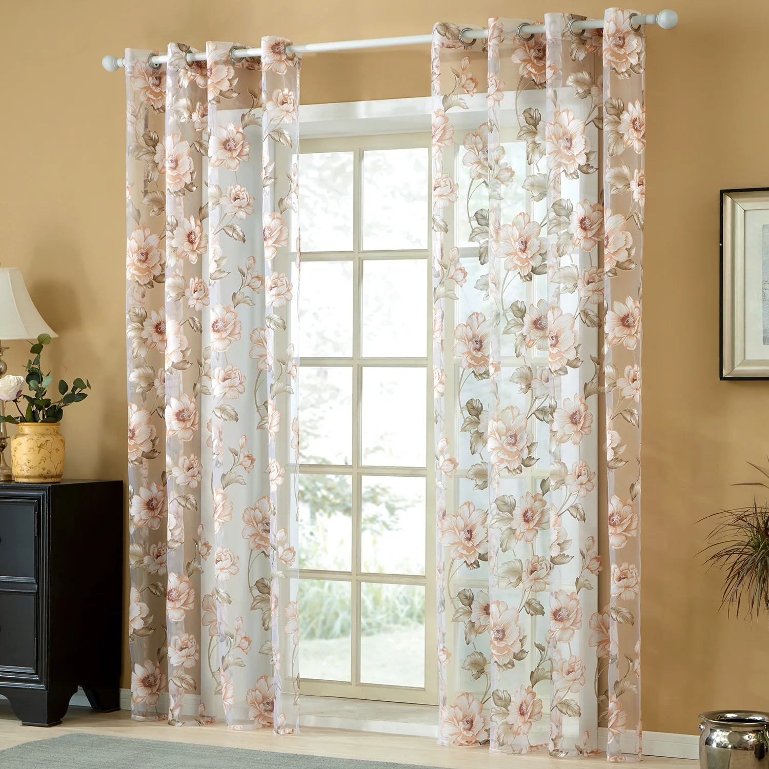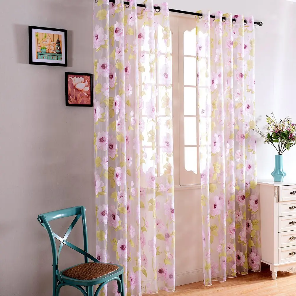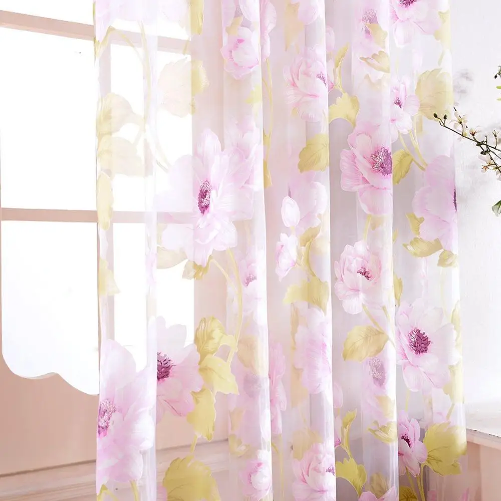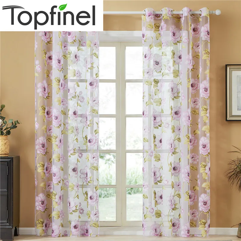 Современные прозрачные шторы Topfinel для гостиной, цветочные тюлевые оконные шторы для девочек, украшения для спальни, розовые цветочные панели, занавески