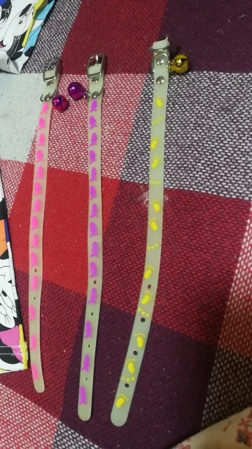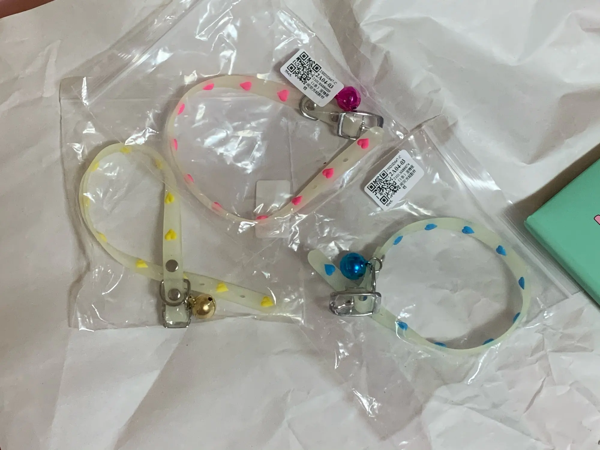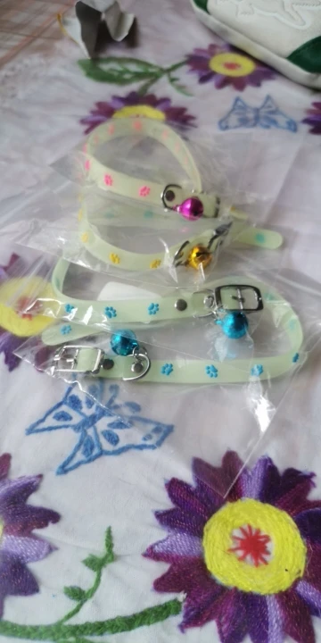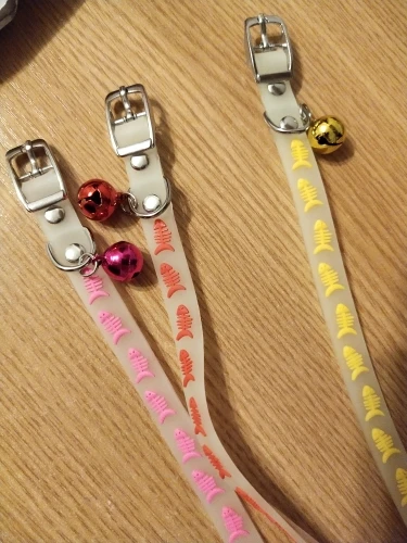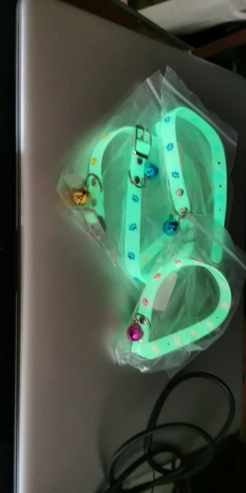 ошейниками мои три кошки довольны! двоим пришлось убрать колокольчики, уж очень они их раздражали. ошейники не светились в темноте, я их положила в LED/UV лампу для сушки маникюра на 2 минуты. теперь отлично светятся! продавца просила отправить красный, розовый и зелёный цвет, но он мне не ответил. в Казахстан посылка шла 34 дня.