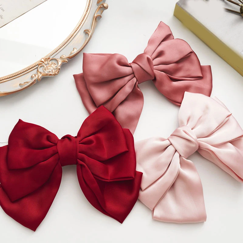 Заколка для волос с большим бантом женская, однотонная, атласная, трехслойная, Весенняя заколка для хвоста, аксессуар для волос, орнамент