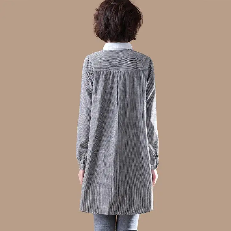 Женская длинная рубашка в полоску, с вышивкой и длинным рукавом