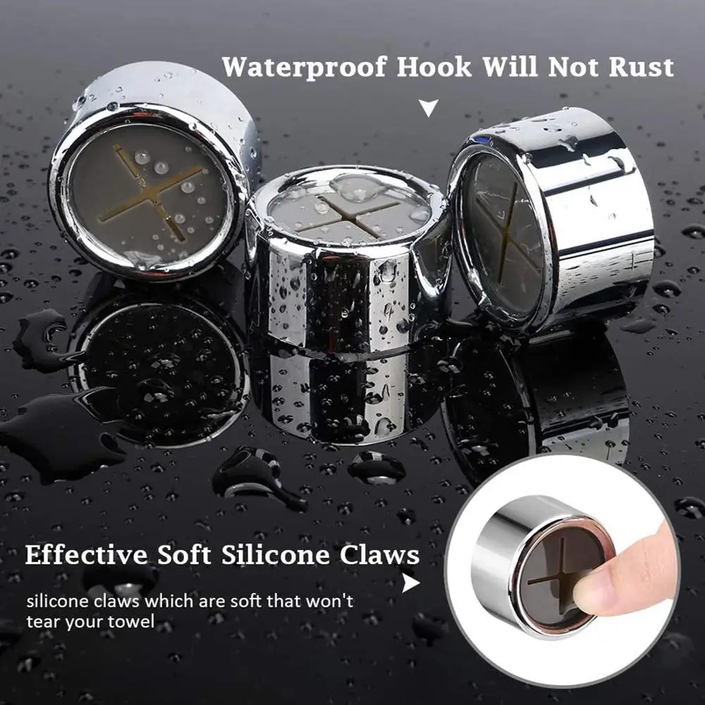 Высокое качество: держатели для полотенец изготовлены из экологически чистого и нетоксичного АБС-материала. Хромированный Пластиковый Корпус поставляется в элегантном металлическом корпусе, что придает эстетический вид. Крюк для предотвращения столкновений: держатель для кухонных полотенец круглый и гладкий, дополнительные углы не безопасны для использования, даже дети могут использовать их без усилий! Устранение разочарования, вызванного частыми выскальзыванием полотенец и разрывом полотенец. Эффективные Мягкие силиконовые когти: новый дизайн для хранения, держатель для полотенец использует принцип физической пряжки, отказываясь от традиционного изогнутого дизайна. В отличие от плохо спроектированных металлических крючков, которые порвут ваше полотенце, наши держатели для полотенец для ванных комнат имеют силиконовые когти, которые мягкие, но функционально эффективно удерживают ваше полотенце. Простота в использовании: Наши кухонные крючки для полотенец с резиновым зажимом, мягкая текстура, встроенная структура, легко вставляется. Просто нажмите полотенце в челюсти или вытяните его для гладкого удаления! Этот держатель для полотенец для ванной комнаты также может использоваться в качестве круглых ручек для шкафа.