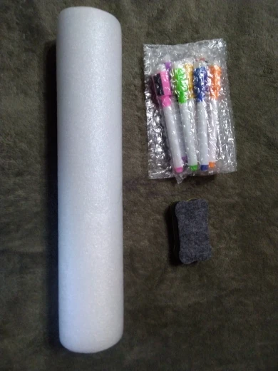 Посылка пришла в течении месяца. Магнитный лист пришел не мятый в губчатой трубке. Размер как и заказывала А3, гладкий глянцевый. В комплекте 8 ручек и губка для стирания 7х4 см (маленькая аккуратненькая). Ручки все пишут и хорошо стираются с помощью губки. Покупкой очень довольна. Продавцу огромное спасибо за качественный товар.