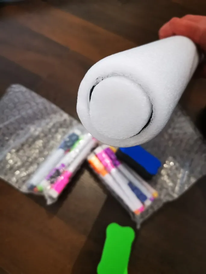 Чуть мятая, но в целом то что и ожидал. Маркеры на доску крепятся плохо, лучше на холодильник.