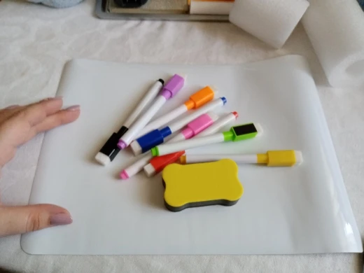 Всё отлично как в описании. Доставка быстрая. Можно брать. В комплекте идёт доска магнитная + фломики + ластик губка.