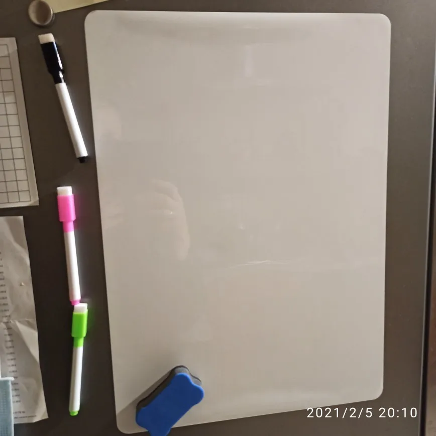 ооочень крутая доска, надписи стираются легко, писать удобно. если быстро записать что то надо, самое то! немного мятая, положили на сутки под атлас мира, выровнялся) быстро собрал посылку и отправил на следующий день. до СПб добралась за 14 дней. спасибо продавцу. стоит брать) вещь хорошая.
