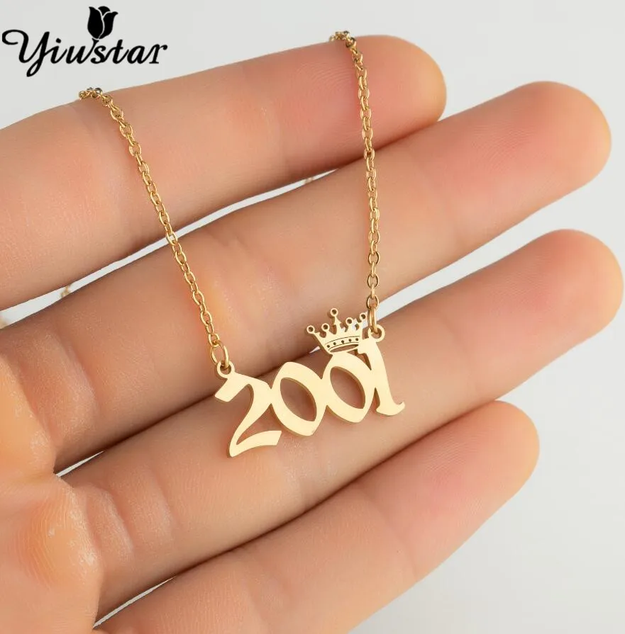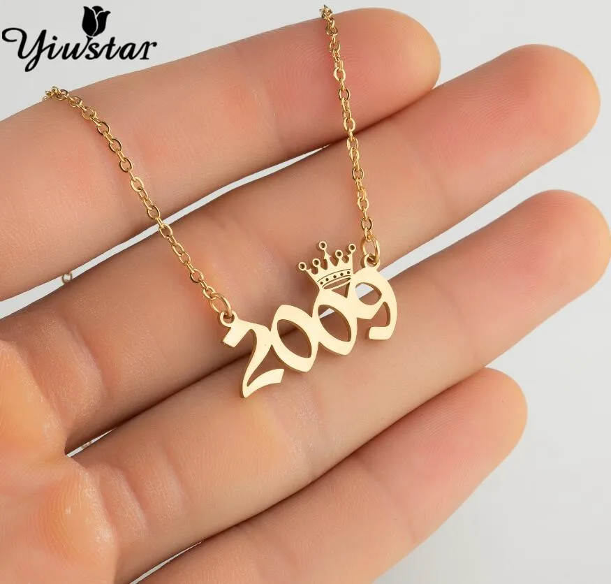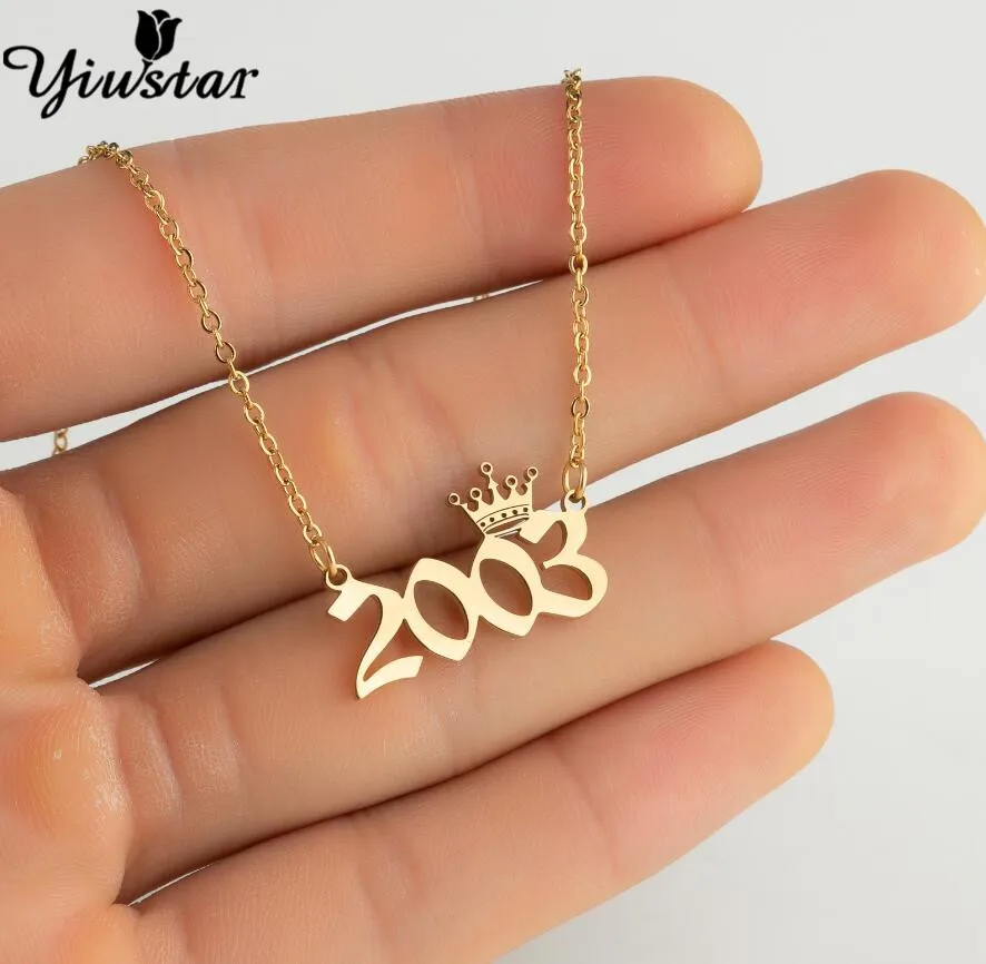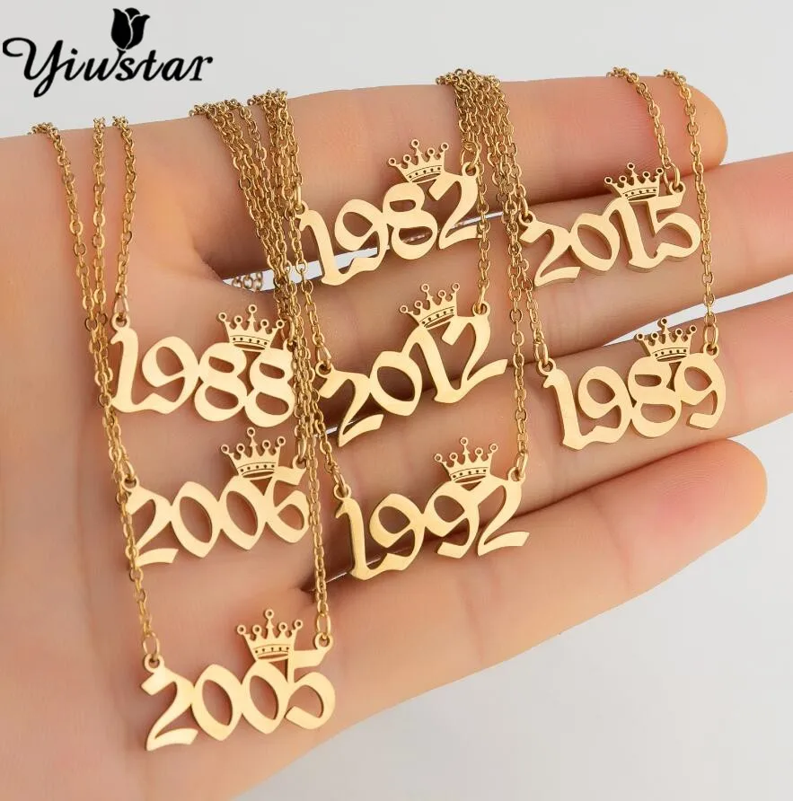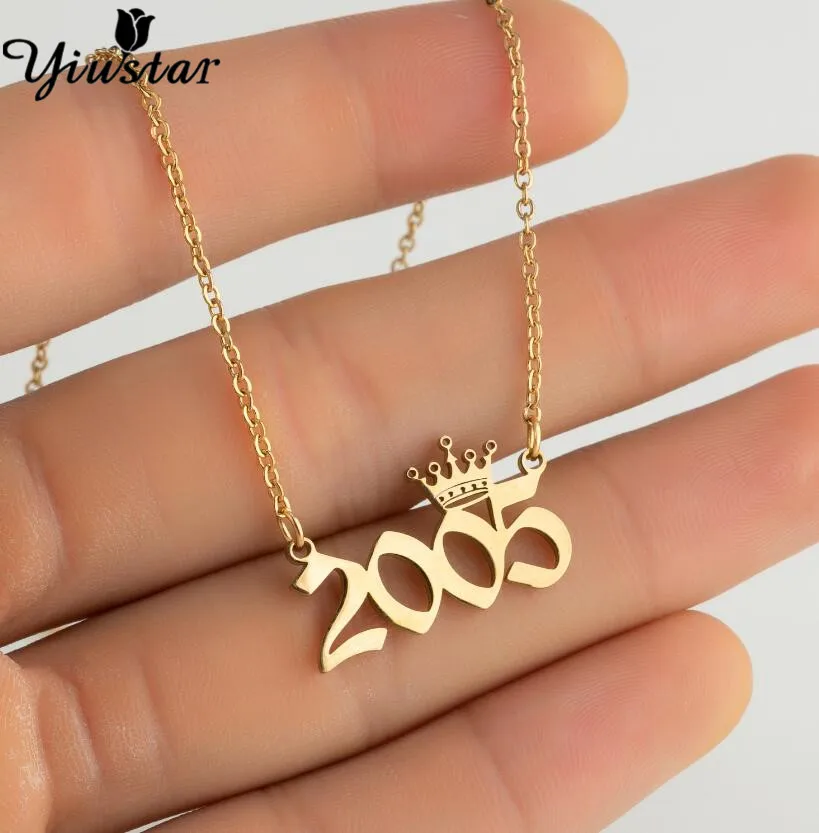 Материал ожерелья: ожерелье из нержавеющей стали 304Процесс ожерелья: лазерная резка, вакуумное покрытие (материал ожерелья: лазерная резка, вакуумное покрытие)Несколько дополнительных стилей: стальной/золотой цвет, 1980-2019 год, с ожерельем с короной