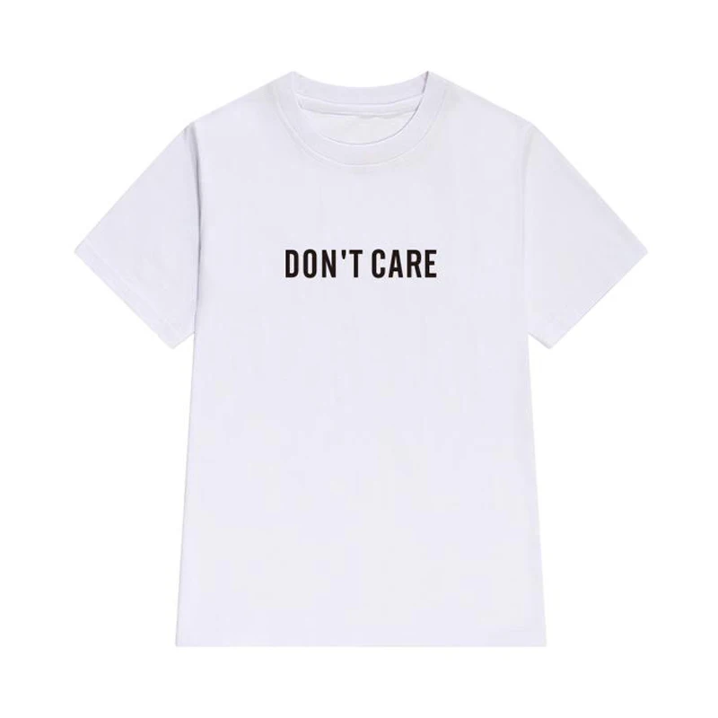 Женская футболка с надписью don't care, Повседневная футболка с графическим принтом в стиле Харадзюку, топ для девушек, женская футболка