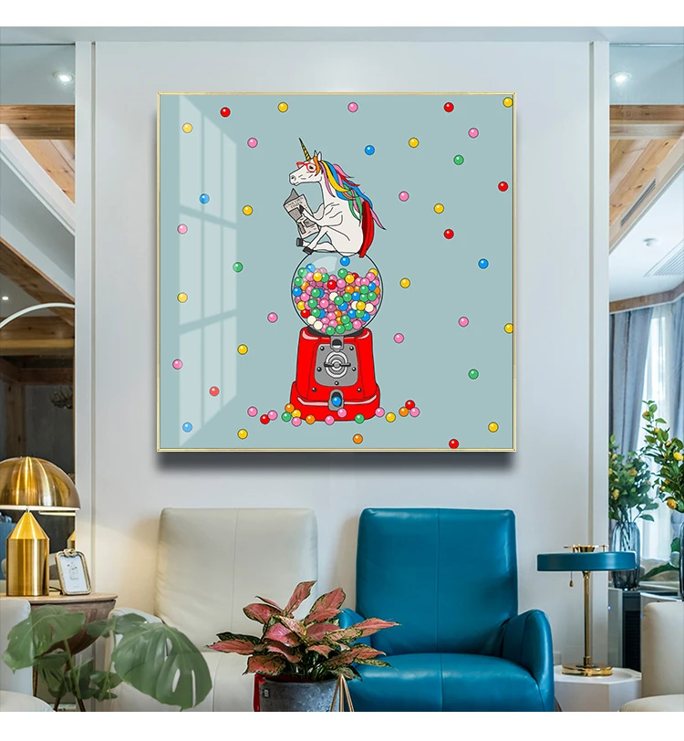Скандинавский современный минималистичный Единорог настенная Картина на холсте скандинавские постеры и принты настенные картины для гостиной домашний декор