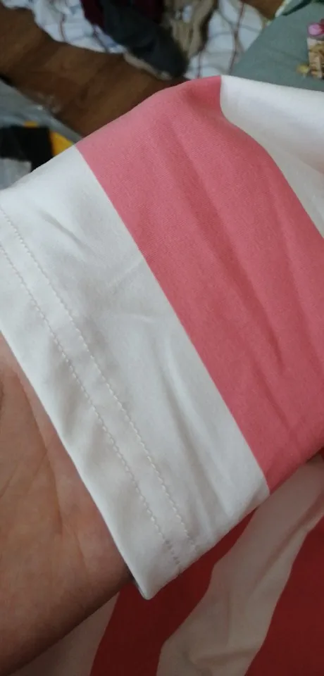 Это меньше, чем вы видите на фото, я думал, что это будет почти одето, но нет, хотя это длинная рубашка. Полоски уже, но очень хорошая ткань, она совсем не тонкая, она как хлопок и выглядит великолепно. Кроме того, он пришел очень быстро