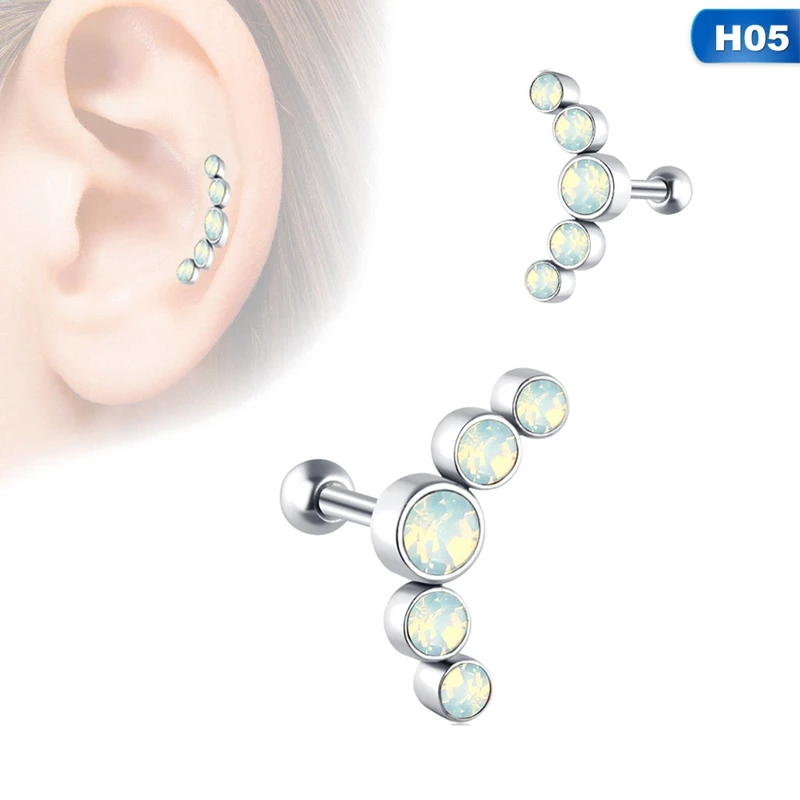 Серьги-гвоздики с опалом, хрящевая спираль, циркониевые, нержавеющая сталь, 1 шт.