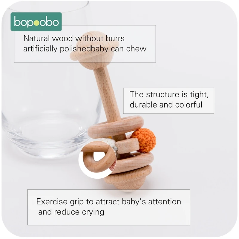 Bopoobo, 20 шт, детские погремушки, бук, деревянный браслет для про...