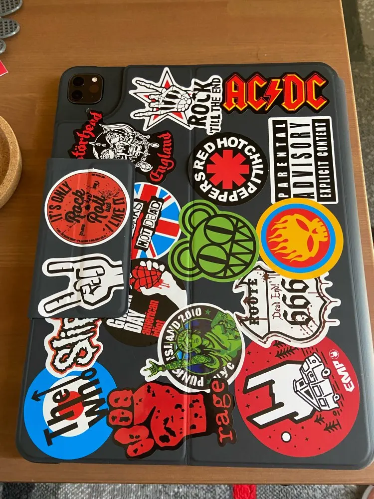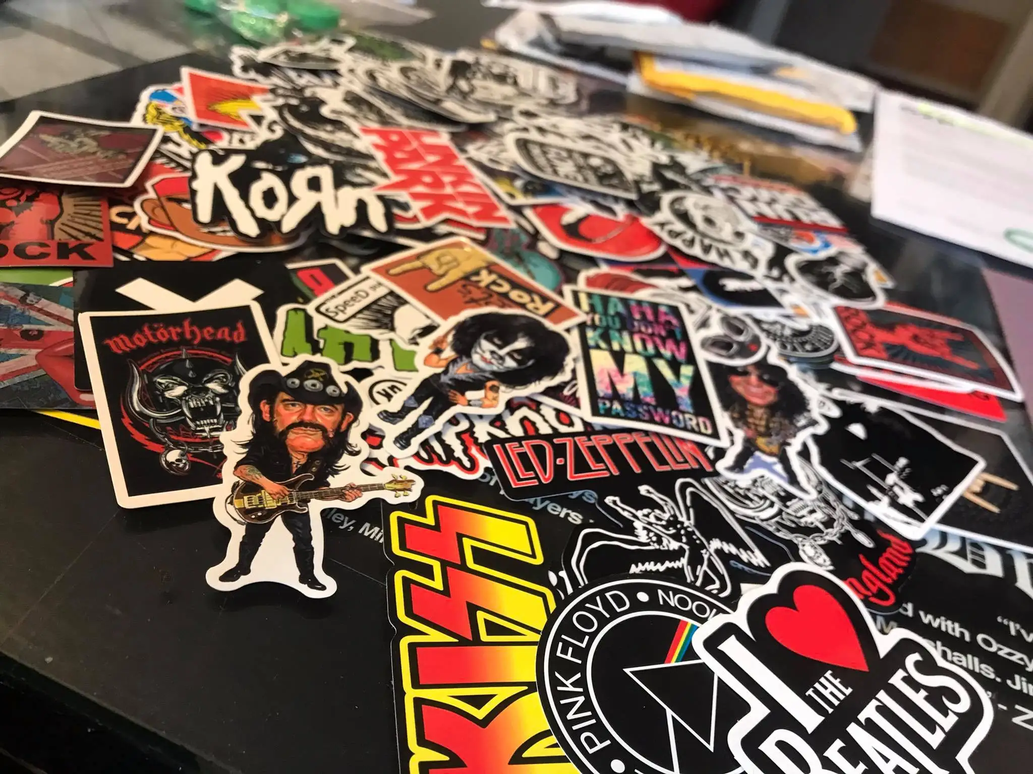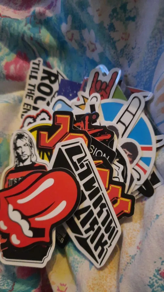 Отличный продукт. Хорошее качество. Рок-наклейки, которые включают в себя много полос.