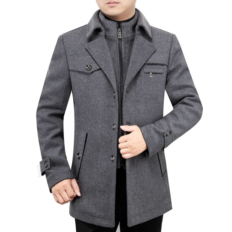 Новое мужское шерстяное пальто, высококачественное однотонное Мужское пальто из смешанной шерсти, мужской Тренч, повседневное пальто, толстая ветровка на осень и зиму