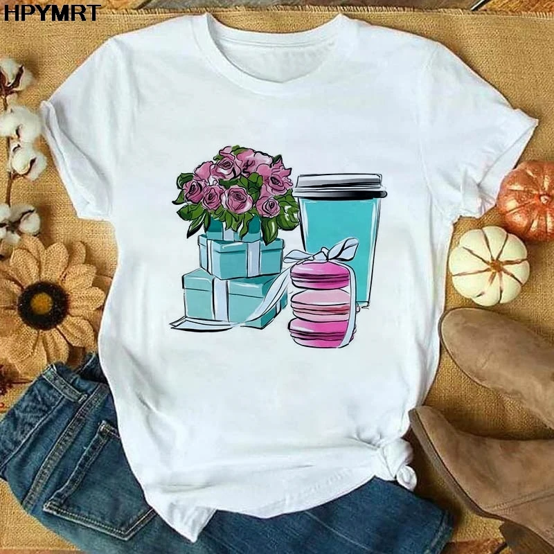 Новинка, красивая футболка с цветочным принтом, кофейным принтом, ж...