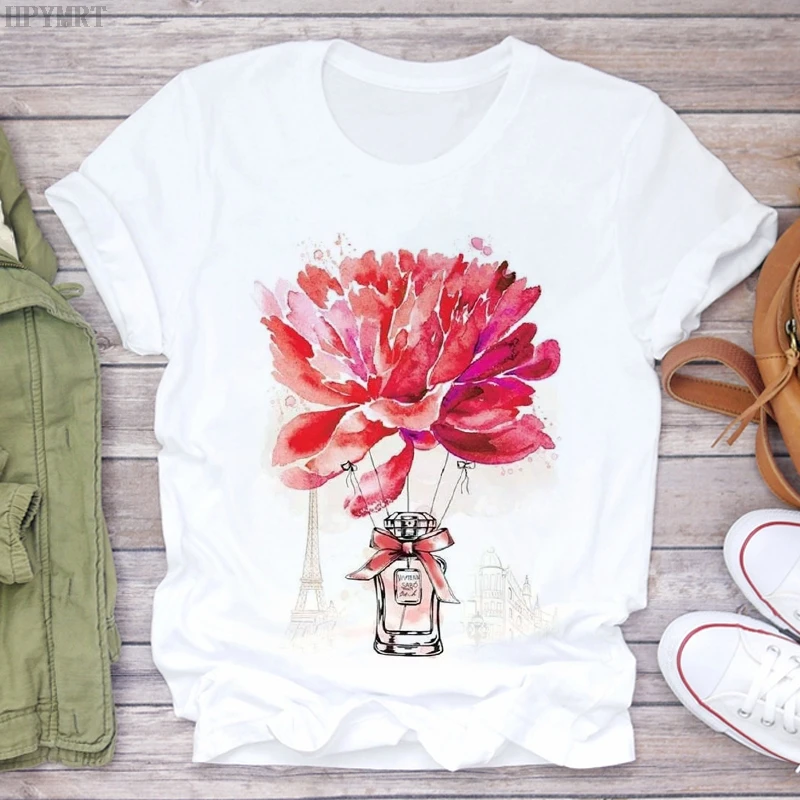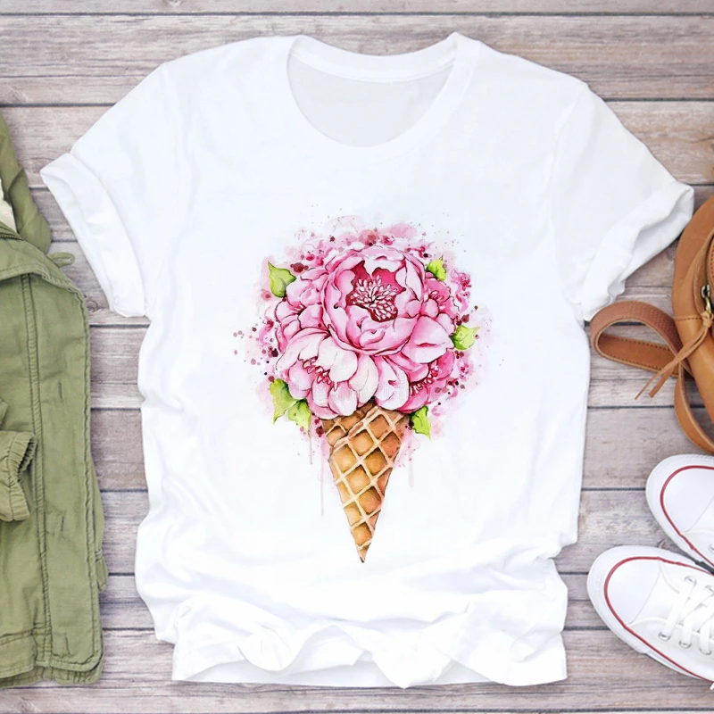 Летняя женская футболка с цветочным принтом, модная женская футболка, Повседневная футболка, Женская Футболка Harajuku с графическим принтом, одежда
