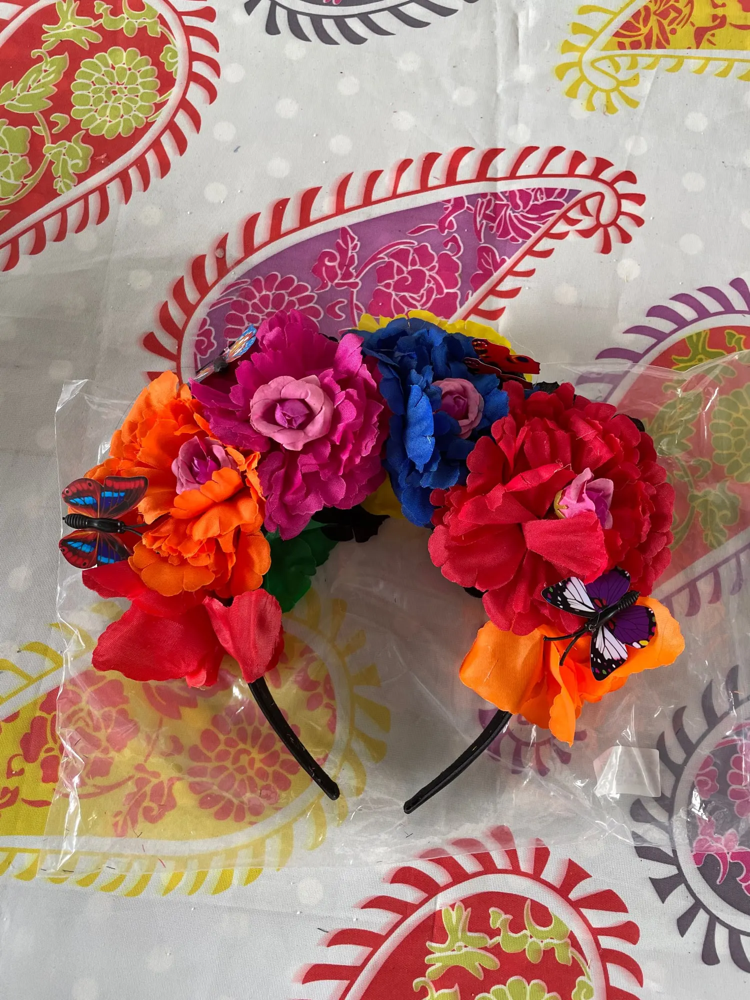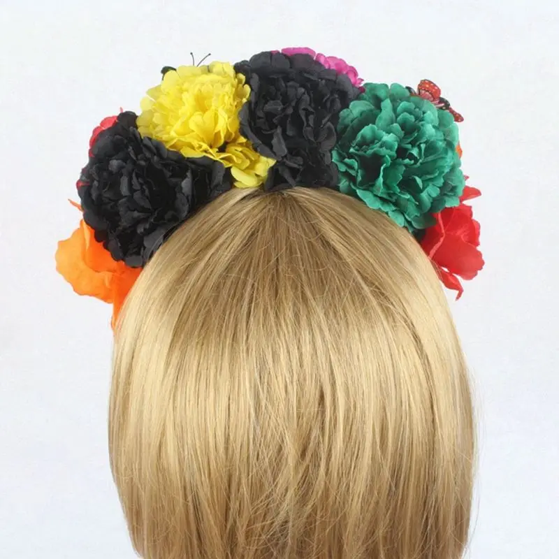 Повязка на голову с имитацией цветных пионов на Хэллоуин, Сказочная бабочка, Мексиканский венок, корона для косплея, костюм для вечеринки, День мертвых H
