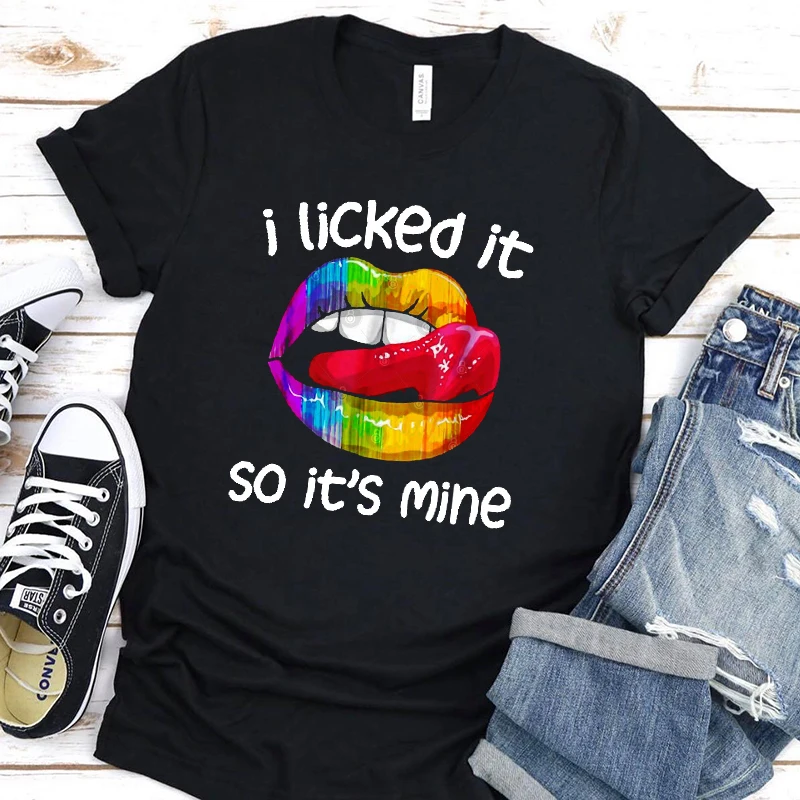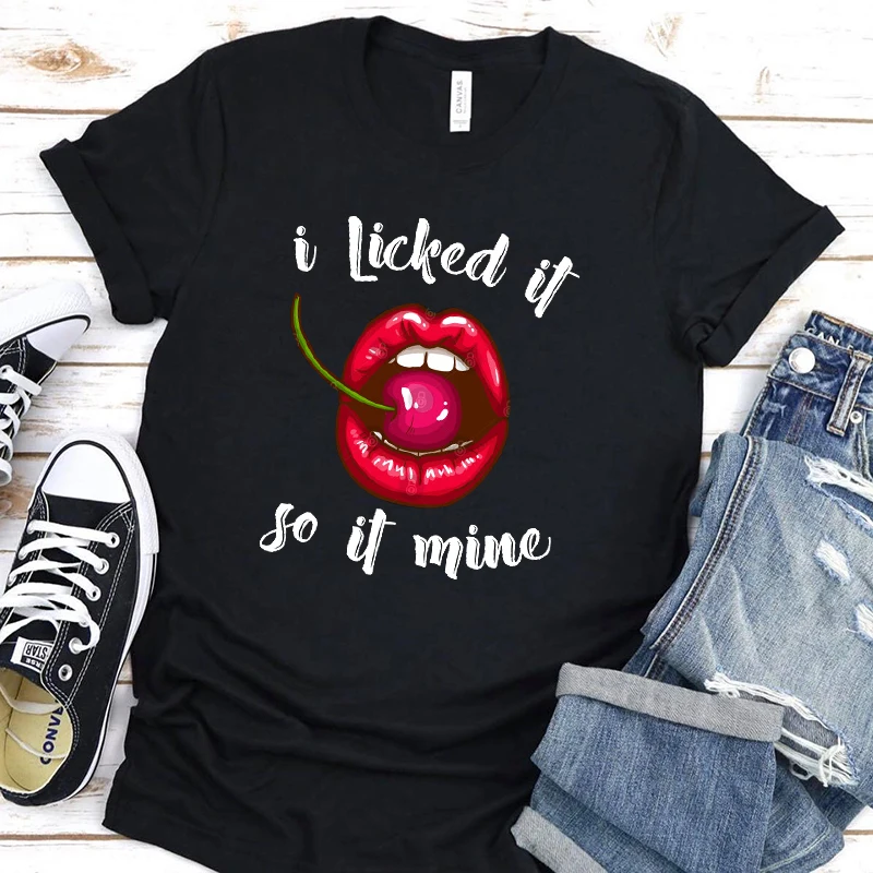 Черная футболка с надписью «I Licked It So It's Mine», женская одежда, летняя футболка 2020, женские Забавные футболки, женские футболки