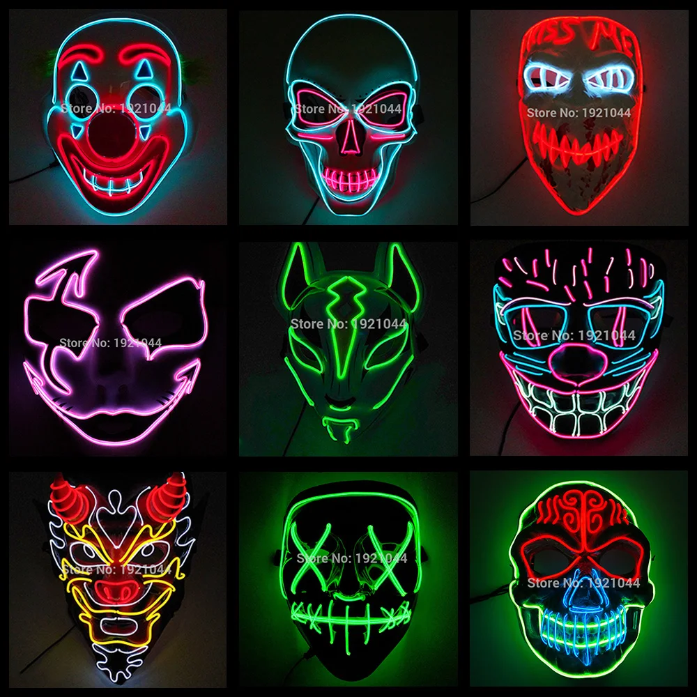 Декоративная маска для Хэллоуина, неоновая, со светодиодсветильник кой
